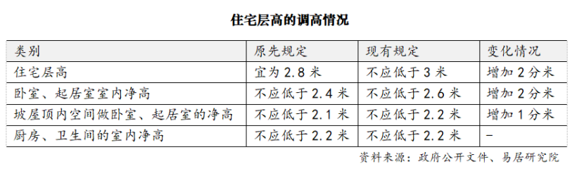 住宅層高不應低于3米,標準顯著提高
