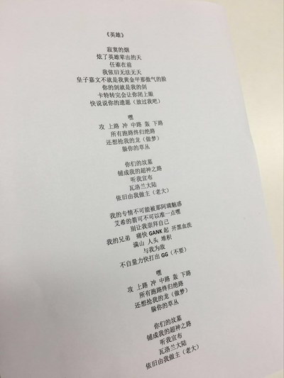而在這個微博發(fā)布之前,英雄聯(lián)盟官方已經(jīng)發(fā)布了周杰倫新歌《英雄》的部分歌詞,比如:“你的劍就是我的劍…艾希的箭可不可以準一點嘿…皇子嘉文不就是我黃金甲那傲氣的臉…我的專情不可能被那阿貍魅惑”,與疑似泄露的完整歌詞也不謀而合,更讓這份完整歌詞的可信度增加了幾分。