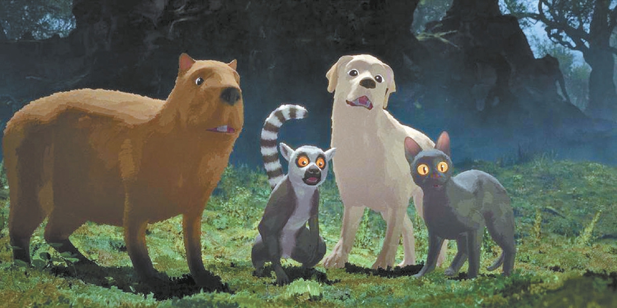 除此之外,片中一切的動(dòng)物形象及發(fā)聲,都來(lái)自導(dǎo)演金茲持續(xù)多年的認(rèn)真研究。這位拉脫維亞導(dǎo)演作為一名貓狗雙全的“鏟屎官”,自然熟知小黑貓和拉布拉多犬的習(xí)性;而卡皮巴拉、環(huán)尾狐猴和蛇鷲的神態(tài)、行為和聲音,則全部來(lái)自他守在動(dòng)物園的觀察記錄。導(dǎo)演本來(lái)還打算將現(xiàn)實(shí)中鯨魚的素材轉(zhuǎn)入blender(一款免費(fèi)開源三維圖形圖像軟件)進(jìn)行渲染,但后來(lái)還是沒忍住加了些人為設(shè)計(jì),將其更加神秘化了。