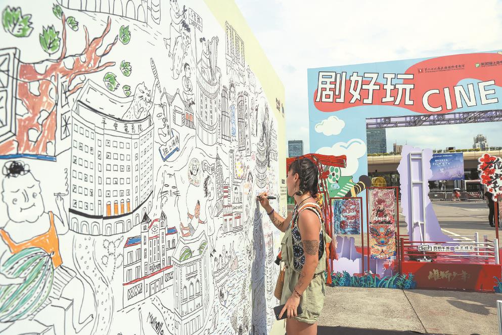 胡子拉碴的警員阿Sir、動(dòng)畫電影《馴龍高手》中的無(wú)牙仔、充滿懸念的“醬園弄現(xiàn)場(chǎng)”……在上海展覽中心,立有一塊由插畫師Rosá玫瑰與市民共創(chuàng)的“我的電影故事”畫板,一筆筆手繪中埋下很多城市彩蛋與弄堂故事,更有影迷在空白插畫區(qū)記錄下自己的“私影史”。畫板右上角有一處方方正正的電影院簡(jiǎn)筆畫,連進(jìn)場(chǎng)路線都用火柴人標(biāo)注清楚,Movieland小程序工作人員韓語(yǔ)指著這處手繪告訴記者:“一位影迷過(guò)來(lái),說(shuō)‘怎么能沒(méi)有我們滬北電影院呢?我也要畫一個(gè)’,他就趴在畫板畫了快半小時(shí),昨天太陽(yáng)那么大,背都曬紅了?!?/p>