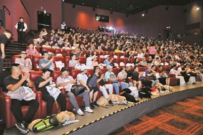 電影院里,進(jìn)來(lái)了幾只導(dǎo)盲犬。