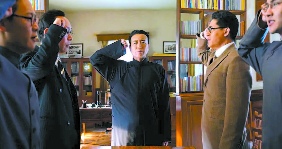 在《覺醒年代》的獄中戲里,陳獨(dú)秀聽聞學(xué)生言論后,先是做了一個(gè)看似悲痛的表情,隨即用手掩面卻發(fā)出笑聲,瞬間吸引了全體學(xué)生的注意,緊緊抓住全場的戲劇焦點(diǎn)。繼而,他雙目放光地大笑起來,雙手插兜向監(jiān)獄門口走去。動(dòng)作的加入讓這層“笑”的能量再次升級(jí)。站在監(jiān)獄門口,他做了一個(gè)反常規(guī)的動(dòng)作——用手來回拉拽監(jiān)獄的鐵門,身體被這個(gè)動(dòng)作牽引著,發(fā)出了更為豪爽的“大笑”,與鐵門拖拽的“吱吱”聲形成獨(dú)特的交響。此時(shí),陳先生才指著學(xué)生們說道:“你們不是一般的自大?。 鄙袂橹胁o刻板的指責(zé),而是一種混雜著嘲弄、心疼與從容的復(fù)雜意味。這種多義的面部表情處理,承載了更為豐富的“只可意會(huì),不可言傳”的信息量。觀眾至此方悟,于和偉這一系列反常動(dòng)作的設(shè)計(jì)用意,是通過陳獨(dú)秀覺得學(xué)生行為“幼稚得可笑”,來反襯他內(nèi)心的強(qiáng)大,體現(xiàn)其對(duì)革命道路艱巨性的清醒認(rèn)知。他敢于創(chuàng)造不按常理出牌的動(dòng)作,最終總能將情緒準(zhǔn)確傳達(dá),以一人之能量瞬間與眾多對(duì)手“拔河”,并讓學(xué)生們心甘情愿地走出監(jiān)獄。這正是他“情理之中,意料之外”的角色自由創(chuàng)造的體現(xiàn)。