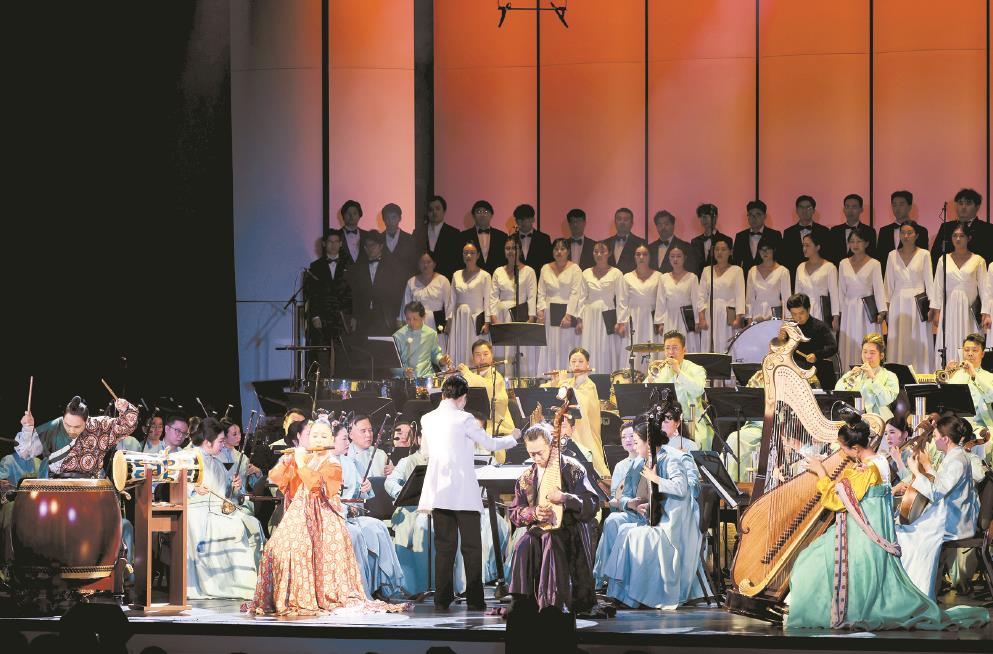 作曲家孔志軒分享了演出細(xì)節(jié),此次他優(yōu)化了第五與第六篇章。“第五篇章《風(fēng)骨錚鳴》擴(kuò)充原有結(jié)構(gòu),層層遞進(jìn)間讓風(fēng)骨內(nèi)涵更立體豐滿;第六篇章《星河共潮》則精簡(jiǎn)結(jié)構(gòu),凝練打磨各部分音樂形象,核心是凸顯中華民族屹立不倒的民族氣節(jié)?!?/p>