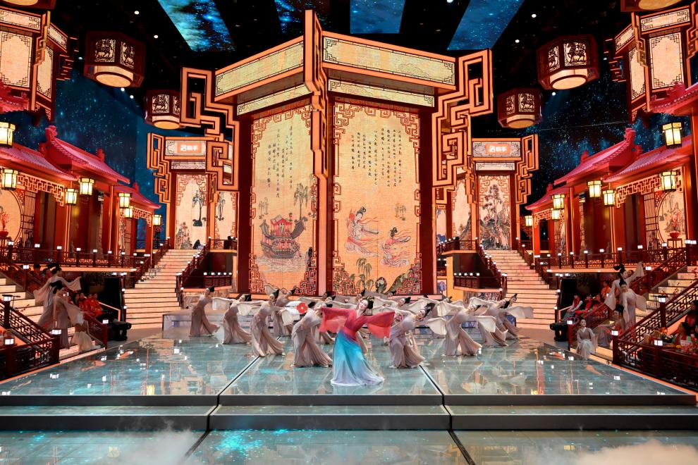 近年來(lái),遼寧春晚不斷將獨(dú)特的區(qū)域文化深度融入節(jié)目中。2023年復(fù)刻遼代壁畫(huà)《散樂(lè)圖》,2024年以查海遺址“石堆塑龍”為靈感創(chuàng)作節(jié)目《龍騰》,2025年從《簪花仕女圖》中提取意象打造詩(shī)畫(huà)舞蹈……遼寧春晚正在成為東北文化的講述者。