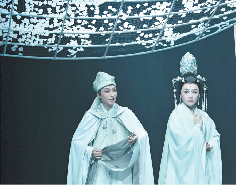 舞臺上,《帝女花》長演不衰,多個(gè)劇團(tuán)進(jìn)行了重塑排演,其中不乏創(chuàng)新求變的探索。桃花源粵劇工作舍于2022年制作了《帝女花》65周年巡演版,并細(xì)分為管弦光影版、學(xué)生戲臺版等多個(gè)不同版本,激發(fā)觀眾的思考與想象。2024年,廣東粵劇院推出曾小敏、文汝清主演的小劇場粵劇《帝女花·一念》,在保留經(jīng)典唱段的基礎(chǔ)上做簡化,嘗試注入新的時(shí)代氣息。劇中,曾小敏不僅飾演了戴花冠、著宮裝的長平公主,還扮演了穿越古今的素衣女子,引領(lǐng)觀眾穿越古今,體驗(yàn)長平公主的前世今生。
