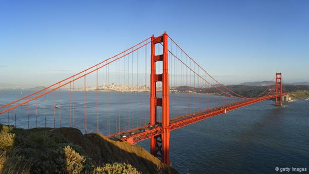 位于美國(guó)舊金山的金門大橋是世界著名的橋梁之一,也是近代橋梁工程的一項(xiàng)奇跡。大橋雄峙于美國(guó)加利福尼亞州長(zhǎng)1900多米的金門海峽之上,歷時(shí)4年,利用10萬多噸鋼材,耗資達(dá)3550萬美元建成。橋長(zhǎng)共2.7公里,橋體為橙色,跨度驚人。該橋于1937年對(duì)外開放,由工程師兼詩(shī)人約瑟夫·施特勞斯設(shè)計(jì),其講究的懸架結(jié)構(gòu)和優(yōu)美的藝術(shù)裝飾塔令人贊嘆不已。