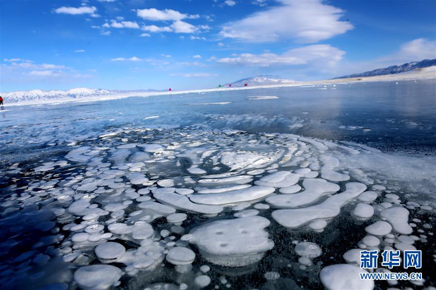 2月20日在新疆博爾塔拉蒙古自治州境內(nèi)的賽里木湖拍攝的湖面結(jié)冰后形成的冰花奇觀(guān)。進(jìn)入2月份后,新疆海拔最高的湖泊賽里木湖湖面全部結(jié)冰,在湖邊的一些小泉眼處,不停泛出的氣泡在冷空氣作用下,迅速凝結(jié),形成了如冰柱、螺旋紋等形式多樣的冰花奇觀(guān),令人嘆為觀(guān)止。新華社發(fā)(沈志君 攝)