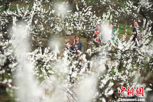 3月8日,重慶銅梁“花果山”成片的李子樹、梨樹、櫻桃樹等多種果樹的花朵競相綻放,漫山遍野潔白的花朵形成了一道美麗的風(fēng)景線,吸引不少市民前來踏青。