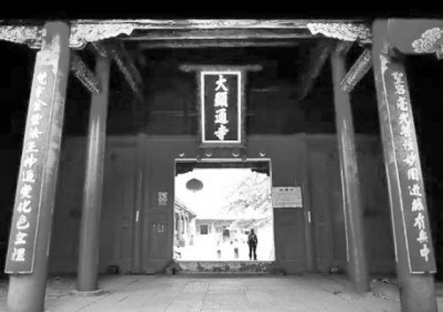 鐘樓上懸吊的大銅鐘叫幽冥鐘,也叫長鳴鐘,鑄造于明天啟年間(1612-1627年),鐘身高八尺,最大外徑五尺,厚三寸,鐘口邊緣成蓮花瓣形狀,外皮刻有楷書佛經(jīng)一部,共有一萬多字。這口銅鐘是五臺(tái)山寺廟中最大的鐘,據(jù)說重九千九百九十九斤。穿過鐘樓門洞,沿石鋪道右拐左折,便是顯通寺的山門。山門看上去豪雄而典雅,兩旁豎著石碑,碑身一邊是大草“龍”字,一邊是大草“虎”字,自由揮灑,一筆寫就,字形具有龍虎的形象,為雷雨居士所書。據(jù)說,佛寺選址講求風(fēng)水,除了靠山之外,總以左青龍、右白虎為佳,顯通寺山門兩側(cè)無此二山,故立此二碑為補(bǔ)。