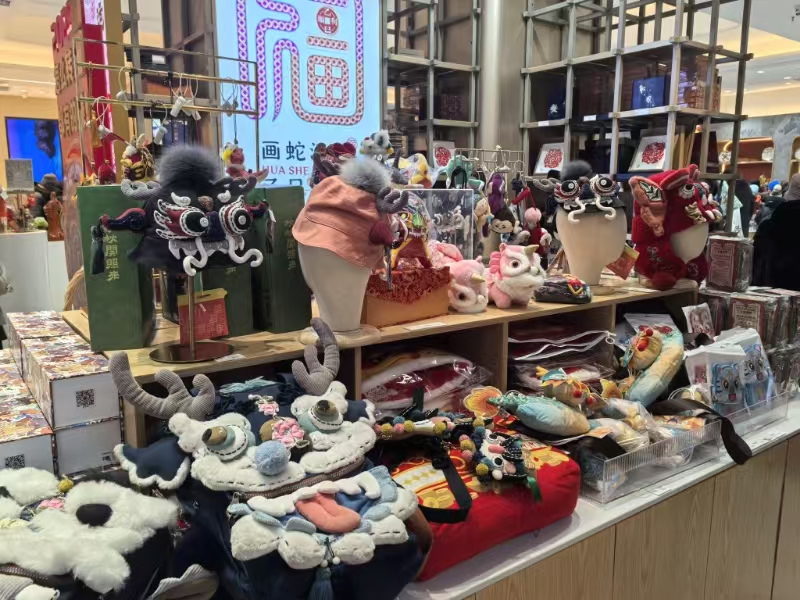跟著孔祥權(quán)的腳步,田雨走到另一個(gè)柜臺前。平遙漆器、孝義皮影、黎城黎侯虎……山西的非遺技藝以新的面貌呈現(xiàn)在大家眼前。