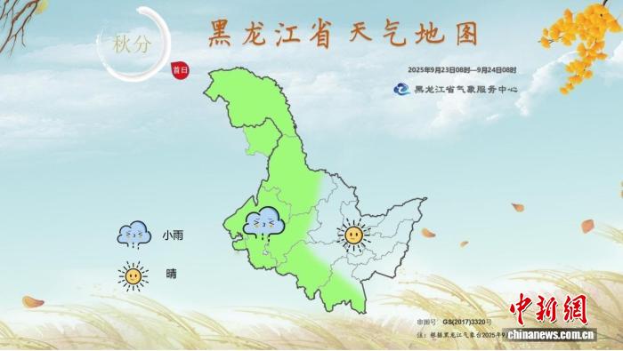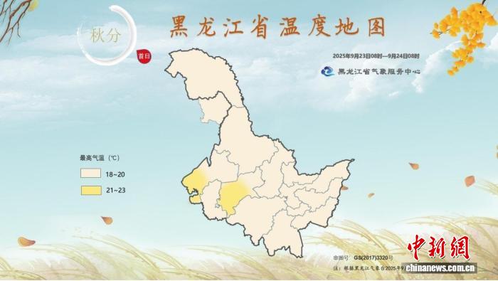 2025年“秋分首日”黑龍江省溫度地圖(2025年9月23日8時(shí)至24日8時(shí))。 黑龍江省氣象局供圖 黑龍江省氣象臺(tái)發(fā)布的天氣預(yù)報(bào)信息顯示,23日白天到夜間,大興安嶺、黑河、齊齊哈爾、綏化、大慶、哈爾濱西部陰有小雨,其他地區(qū)晴轉(zhuǎn)多云。 23日白天最高氣溫,大興安嶺18℃至20℃,齊齊哈爾南部、大慶、綏化南部、哈爾濱、雙鴨山24℃至26℃,其他地區(qū)21℃至23℃。23日夜間最低氣溫,大興安嶺7℃至9℃,齊齊哈爾、大慶、綏化南部、哈爾濱、雙鴨山西部13℃至15℃,其他地區(qū)10℃至12℃。