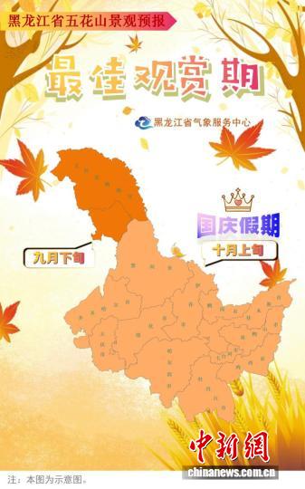 2025年“秋分首日”黑龍江省天氣地圖(2025年9月23日8時(shí)至24日8時(shí))。 黑龍江省氣象局供圖 氣溫是影響物候變化的主要?dú)夂蛞刂?。常年秋分?jié)氣,黑龍江省南部地區(qū),如哈爾濱、牡丹江等地日平均最高氣溫在17℃以上,氣溫適宜;北部地區(qū),如加格達(dá)奇、黑河等地日平均最高氣溫在15℃左右,樹葉最先開始變色,進(jìn)入賞秋季節(jié)。 黑龍江省五花山觀賞期與國慶、中秋假期高度重合,自9月中旬至10月上旬,五花山顏色變化由北至南依次呈現(xiàn)。大興安嶺和伊春作為“秋色先鋒”,早已層林盡染;哈爾濱、牡丹江、佳木斯等地的絢爛秋色將持續(xù)至10月8日左右,完美覆蓋整個(gè)假期。