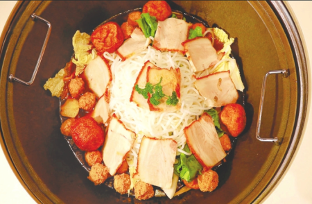 用料講究,特色配菜都要純手工制作。豆腐丸子、肉丸子、燒肉等食材經(jīng)烹飪后,盡顯治愈味道。熬制數(shù)小時的秘制高湯,搭配食客自選食材,經(jīng)鐵鍋燴制,呈現(xiàn)本真風(fēng)味。