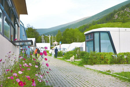 特色住宿業(yè)態(tài)則從高端到普惠多點開花,滿足不同客群需求。獨具匠心的設(shè)計融入自然景觀,讓游客在青磚灰瓦間品茶論道,感受山風(fēng)的輕撫,體驗“結(jié)廬在人境”的閑趣。其中,光明寺村“早種晚收”露營基地可以說是具有代表性的一處。在地方鎮(zhèn)政府和鄉(xiāng)村振興戰(zhàn)略的支持下,露營基地依托東臺溝生態(tài)資源,建成28輛房車營位并配套露天電影、自助燒烤區(qū),智能充電樁、星空觀景臺、生態(tài)衛(wèi)生間等現(xiàn)代化設(shè)施,年均接待游客超2萬人次,成為社交平臺上的“網(wǎng)紅打卡地”,在戶外休閑旅游和特色住宿市場中建立了良好的聲譽(yù)和強(qiáng)大的競爭力。