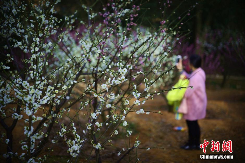 2月20日,三湘大地氣溫逐漸回升,湖南省森林植物園千株梅花競相綻放,眾多游客置身于花海中,與這難得的美景合影留念。 楊華峰 攝