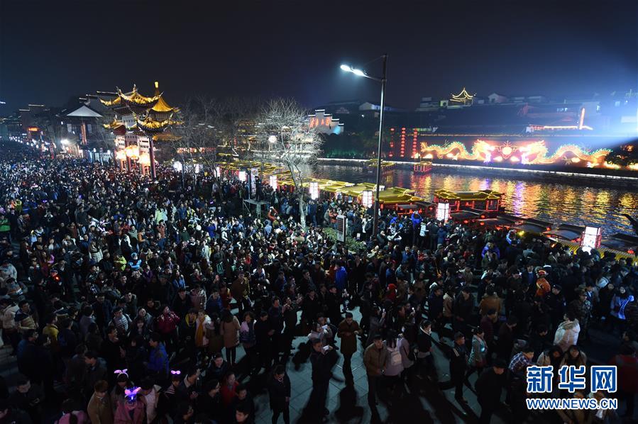 壯觀!元宵夜南京秦淮燈會(huì)游人如潮