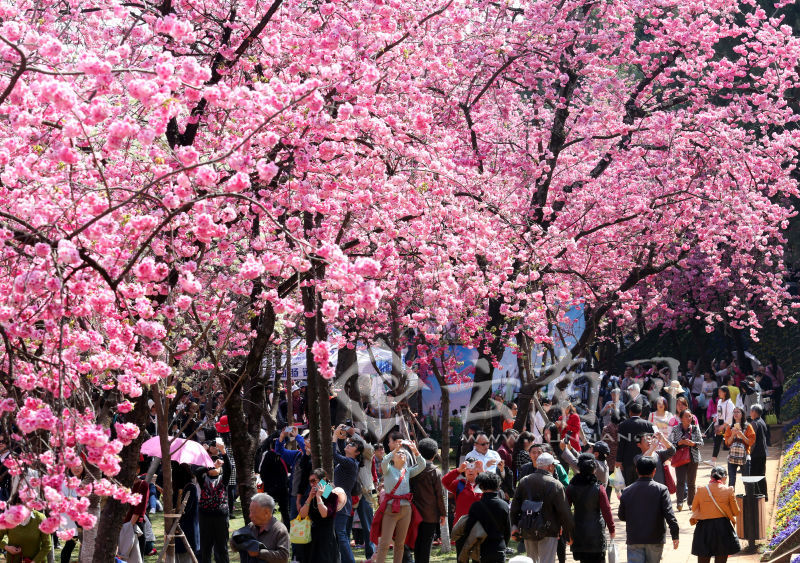 3月13日,昆明圓通動(dòng)物園人潮涌動(dòng),數(shù)千株櫻花和海棠進(jìn)入盛花期,吸引大批游客前來(lái)賞花觀景。