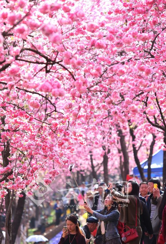 3月13日,昆明圓通動(dòng)物園人潮涌動(dòng),數(shù)千株櫻花和海棠進(jìn)入盛花期,吸引大批游客前來賞花觀景。