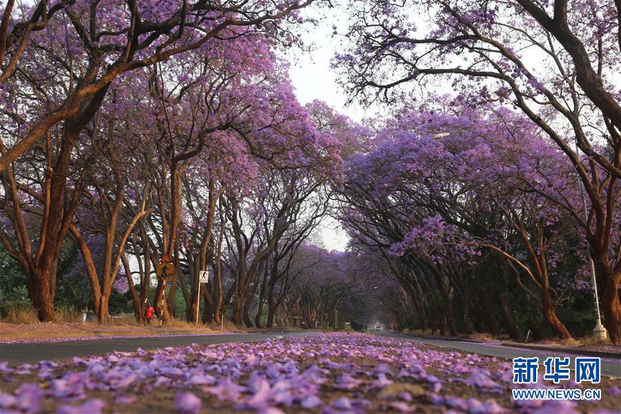 在津巴布韋首都哈拉雷,隨處盛開的藍(lán)花楹成為靚麗的風(fēng)景(10月2日攝)。 近日,位于非洲南部的津巴布韋進(jìn)入春季,全國各地的藍(lán)花楹紛紛盛開。津巴布韋風(fēng)光秀麗,擁有維多利亞瀑布、大津巴布韋遺址等5處世界自然或文化遺產(chǎn)。首都哈拉雷有多處神奇的平衡石景觀,同時也因出色的園藝被稱為非洲“花城”。新華社發(fā)(陳雅琴攝)