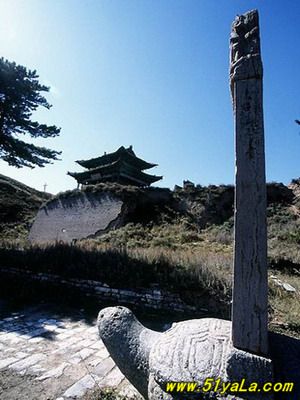 雄關(guān)雁門,居“天下九塞”之首(《呂氏春秋》)。從戰(zhàn)國時(shí)期的趙武靈王起,歷代都把此地看作戰(zhàn)略要地。趙置雁門郡,此后多以雁門為郡、道、縣建制戍守。雁門關(guān)之稱,始自唐初。因北方突厥崛起,屢有內(nèi)犯,唐駐軍于雁門山,于制高點(diǎn)鐵裹門設(shè)關(guān)城,戍卒防守。《唐書·地理志》描述這里“東西山巖峭拔,中有路,盤旋崎嶇,絕頂置關(guān),謂立西徑關(guān),亦曰雁門關(guān)?!焙蠼?jīng)五代十國、宋、遼、金、元約四百余載。元朝設(shè)千戶所,關(guān)城被毀。明代吉安侯陸享于洪武七年(1374)自監(jiān)民工筑新關(guān)于舊關(guān)東北十里處的要道。南距代城縣四十余里,北鄰廣武古城二十一里,地勢更為險(xiǎn)要。明末清初的著名學(xué)者顧炎武曾親臨此地。他寫道“雁門重關(guān),山巒在演,霞飛云舉,兩山對峙,其形如門,而飛雁出于其間。”該關(guān)城,周長二里,墻高二丈,石座磚身,雉堞為齒,洞口三重,曰東門、西門、小北門。東門上筑樓臺(tái),曰雁樓,門額嵌石匾一方,橫書“天險(xiǎn)”(即“天險(xiǎn)”)。西門上筑有楊六郎廟,門額嵌石匾一方,橫書“地利”(即“地利”)。小北門未設(shè)頂樓,但磚石結(jié)構(gòu),格外雄固。門額石匾橫刻:“雁門關(guān)”三字。洞門兩側(cè)鑲嵌磚鐫楷書檢聯(lián):“三關(guān)沖要無雙地,丸塞尊崇第一關(guān)?!睎|門外北側(cè)建有“靖邊寺”祀戰(zhàn)國時(shí)代的軍事家趙將李牧。西門外右側(cè)建有關(guān)帝廟。關(guān)城正北置有駐軍營房,東南設(shè)有練兵教場。整個(gè)關(guān)城建筑,虎踞龍盤,雄偉壯觀。明清以后,關(guān)城雖屢有重建。但隨著我多民族統(tǒng)一國家疆域的逐步形成,內(nèi)長城作為“內(nèi)邊”的作用已經(jīng)失去,所屬的雁門雄關(guān)也隨之荒廢?,F(xiàn)在的關(guān)城僅在東門、西門、小北門三個(gè)門洞和靖邊寺前的一對石獅,一副石旗桿,明鐫李牧碑石一塊,以及寺后的數(shù)株青松。
