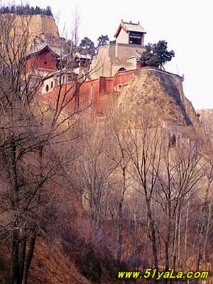 小西天三面環(huán)山,庵前臨河,古木參天,清流涓涓,鳳凰山土崖如削,寺廟突出在高臺邊緣處。登小西天須經(jīng)“通天橋”,踏240余級臺階,穿越10多米長的土洞,才能踏入小西天的院門。寺院外形奇特,眾多臺階攀登而匕勢如登西天極樂世界之感。庵分上下兩院。