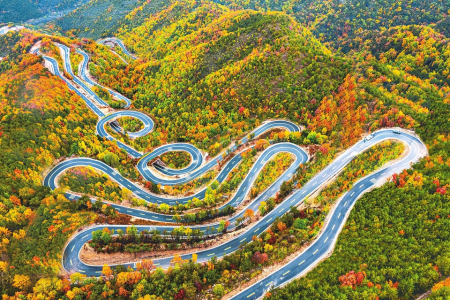 10月17日拍攝的左權(quán)縣太行龍泉風景區(qū)景色。太行一號旅游公路北天池段,似長龍盤旋在五彩斑斕的太行秋色之中,峰回路轉(zhuǎn),風景秀麗,繪成一幅絕美的天然畫卷,帶領(lǐng)游客開啟詩意之旅。