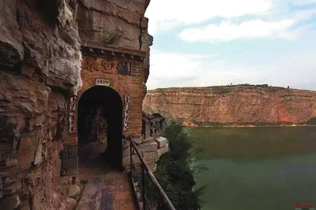 沿著石壁繼續(xù)下行十多米,眼前出現(xiàn)一條羊腸小道,小道中途還有座獨(dú)木橋,橋的一端建有石門,門上刻“懸空界”三字,穿過石門便是聞名天下的彌佛洞。彌佛洞建在黃河峽谷絕壁上的一個(gè)天然石窟之中,洞內(nèi)怪石倒垂,犬牙交錯(cuò),人至其中如入虎口。從石洞后壁登23級(jí)石階,又有一石窟,高約兩丈,內(nèi)供佛像一尊。彌佛洞憑借雄渾壯觀的自然景觀給人們留下深刻印象,中國(guó)當(dāng)代著名畫家吳冠中先生觀后稱其為“黃河上的一大奇跡景觀”。