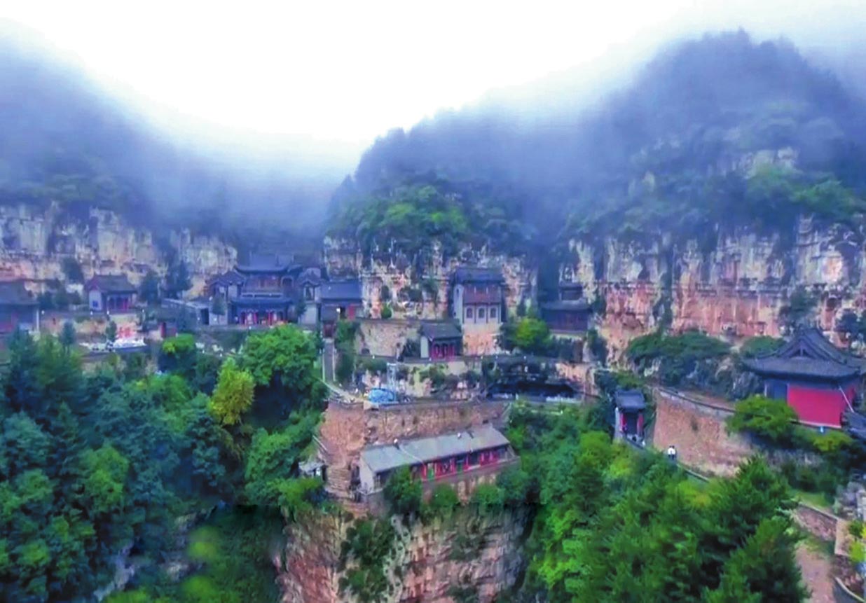 《代州志》記載,趙杲觀創(chuàng)建于北魏時(shí)期,歷代均有修葺擴(kuò)建。其北洞是主體建筑部分,現(xiàn)存建筑物為明代重修,可分北洞與南洞兩大群落。北洞以道教為主,南洞以佛教為主。其中最有特色的兩處要算是北洞的“五層樓”和“三間閣”了。趙杲觀東側(cè)迎面山壁上,自然形成了龐大的三角形石縫,內(nèi)有天然石洞,景觀奇特。石縫上端,外建五層樓閣。依崖開(kāi)鑿石洞,梁架結(jié)構(gòu)與崖石交接構(gòu)筑,建造精巧。三間閣內(nèi)設(shè)有鐵索,扶鐵索可攀援而上。箭閣外塑趙杲泥像,頭頂距石崖僅二指半,故舊稱(chēng)“趙杲觀,離天二指半”。再往南,就是趙杲觀最險(xiǎn)峻的景觀了。