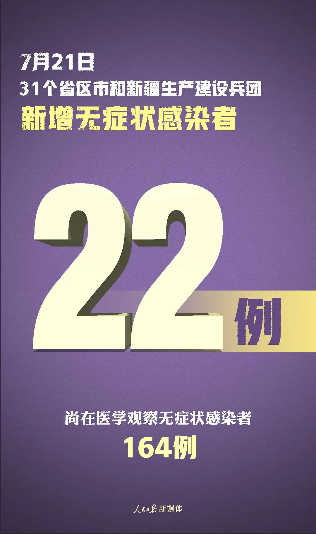 31個省(自治區(qū)、直轄市)和新疆生產(chǎn)建設(shè)兵團報告新增無癥狀感染者22例(境外輸入8例);當日無轉(zhuǎn)為確診病例;當日解除醫(yī)學(xué)觀察7例(境外輸入4例);尚在醫(yī)學(xué)觀察無癥狀感染者164例(境外輸入84例)。
