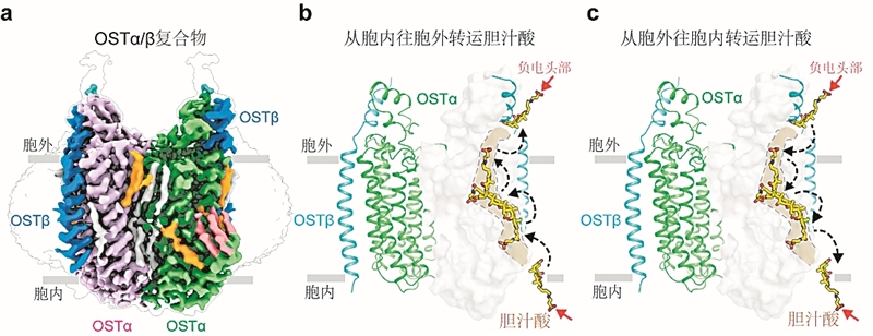 轉運蛋白OSTα/β屬于溶質載體蛋白大家族,負責將腸道吸收的膽汁酸“泵回”血液,送回肝臟再利用。它的功能一旦失常,可能導致消化不良、膽汁淤積甚至肝損傷。