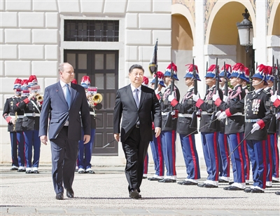會談前,阿爾貝二世親王為習(xí)近平舉行隆重歡迎儀式。