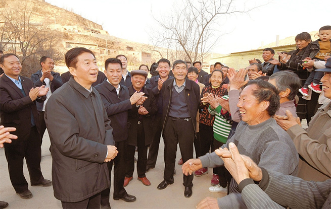 三月二十五日,駱惠寧在臨縣大禹鄉(xiāng)前陽塔村指導(dǎo)干部進村服務(wù)工作,與村民們親切交談,希望在整村脫貧基礎(chǔ)上確立新的目標,繼續(xù)努力奮斗,使日子越過越好。