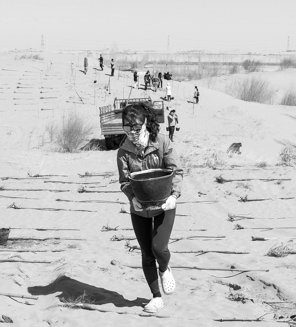 3月31日,一名青年志愿者正在取水澆灌。當(dāng)日,200余名中韓兩國青年志愿者來到內(nèi)蒙古自治區(qū)達(dá)拉特旗庫布其沙漠種樹。2006年起,中國國際青年交流中心與韓國韓中文化青少年協(xié)會組織兩國青年志愿者在庫布其沙漠植樹,參與防沙固沙項目。截至目前已植樹850多萬株,造林3萬多畝。新華社記者劉磊攝
