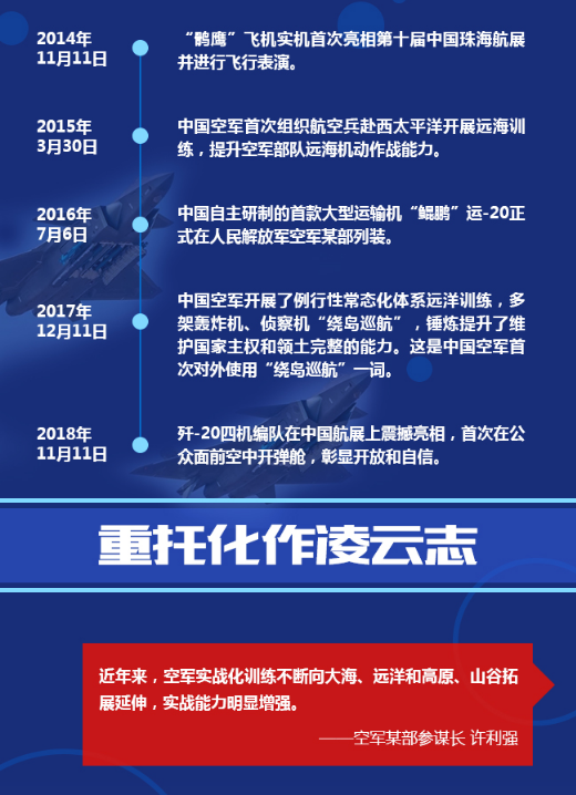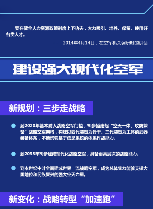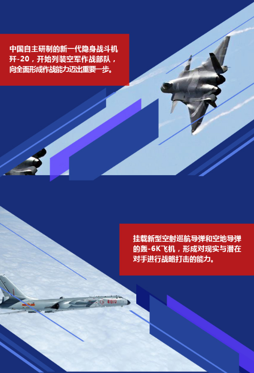 今年是新中國成立70周年,也是中國空軍建軍70周年。中國空軍以習(xí)近平強(qiáng)軍思想為指引,緊緊圍繞黨在新時代的強(qiáng)軍目標(biāo),部署和推進(jìn)了一系列戰(zhàn)略布局和戰(zhàn)略舉措。
