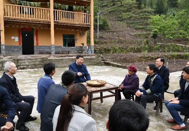 湖南湘西十八洞村困難群眾施成富家門前的空地,成了總書記召開“現(xiàn)場(chǎng)座談會(huì)”的場(chǎng)地。他同村民圍坐在一起商量脫貧致富奔小康之策。