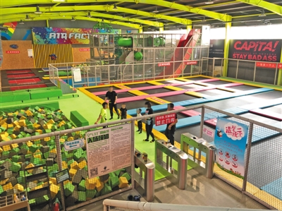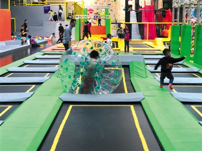 近日,昌平區(qū)沙河一家蹦床樂園內(nèi),不少家長(zhǎng)領(lǐng)著孩子在里面玩耍,也有不少成年人結(jié)伴放松。場(chǎng)館內(nèi)沒有劃分成人和兒童區(qū),未見有工作人員維持秩序,除蹦床外場(chǎng)地內(nèi)還有一些其他輔助游樂設(shè)備。 新京報(bào)記者 張靜姝 攝