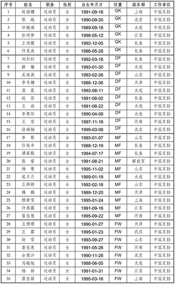 人民網(wǎng)北京5月18日電(楊磊)5月18日,中國(guó)足協(xié)在其官網(wǎng)公布了女足國(guó)家隊(duì)里約奧運(yùn)會(huì)參賽運(yùn)動(dòng)員35人大名單。馬曉旭、王霜等人在列,門(mén)將王飛沒(méi)有進(jìn)入此次大名單。