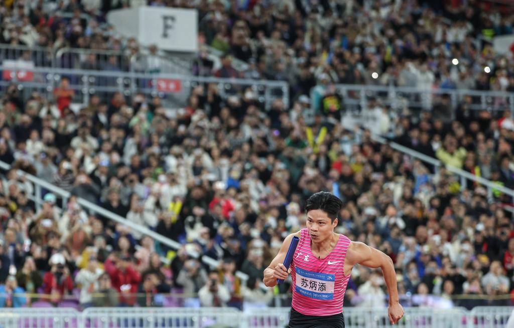 曾經(jīng)的“飛人”就此謝幕,冠軍由新科男子100米冠軍李澤洋領(lǐng)銜的湖北隊(duì)以38秒6的成績(jī)收入囊中。他對(duì)能陪伴偶像完成“最后一舞”深感榮幸:“我們能做的只有無(wú)盡地追趕他的腳步?!?/p>