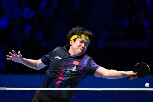 3月31日,中國(guó)隊(duì)選手王楚欽在比賽中回球。新華社發(fā)(張金加攝)