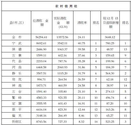 忻州集中清收農(nóng)村信用社郵儲(chǔ)銀行