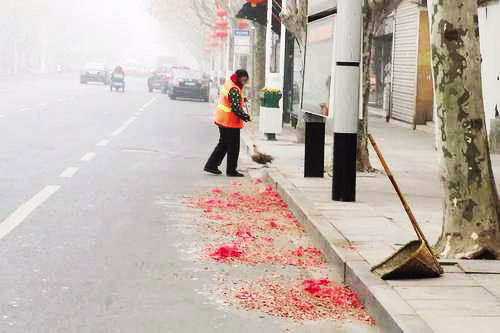 45歲的環(huán)衛(wèi)工張秀生告訴筆者,“越是節(jié)假日,越不能停歇,把路面收拾得干干凈凈,老百姓走著舒坦,我心里也高興?!边@幾天風大天冷,張師傅卻干得特別有勁。不到2個小時,城區(qū)健康中街周邊的垃圾全部清理干凈。“最忙的時候就是下午四五點鐘,路上的垃圾數(shù)量明顯增加。”張師傅說,有時他一直忙到晚上6點才回家,第二天早上,不到4點他就從床上爬起來了。據(jù)悉,春節(jié)期間,城區(qū)的環(huán)衛(wèi)工人基本全部在崗,許多環(huán)衛(wèi)工人甚至提前到崗清掃街道,確保市容整潔。張師傅希望市民們春節(jié)燃放鞭炮時不僅要注意安全,還要保護環(huán)境衛(wèi)生。