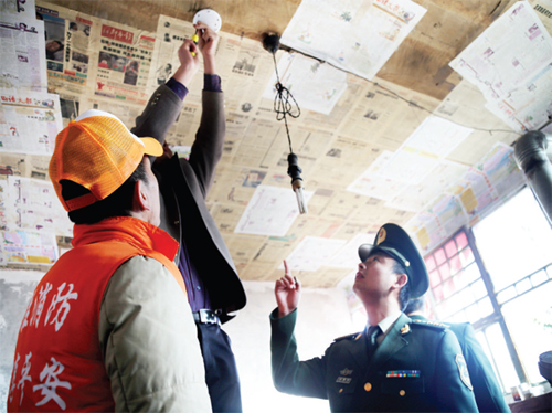 消防官兵為村民安裝感煙探測(cè)報(bào)警器