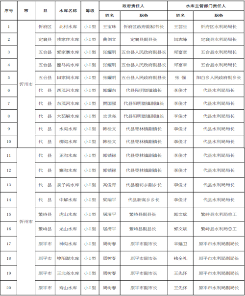 2016 年忻州市小型水庫大壩安全責(zé)任人
