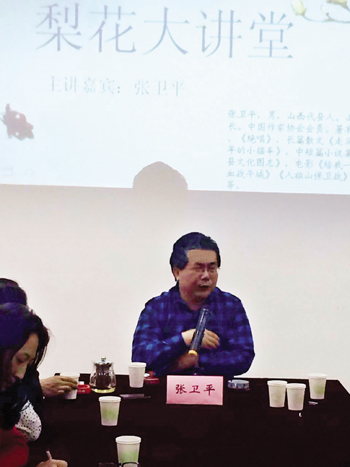 農(nóng)家出身的張衛(wèi)平來自代縣基層,現(xiàn)為中國作家協(xié)會會員,著有長篇小說《給我一支槍》、《絕唱》,長篇散文《走馬雁門》,短篇小說集《童年的小搖車》、中短篇小說集《野魂》,電影《給我一支槍》、《浴血雁門關》、《血戰(zhàn)午城》、《人祖山保衛(wèi)戰(zhàn)》,電視連續(xù)劇《大宗師》。在這次“梨花大講堂”文學講座上,張衛(wèi)平從文學的載體切入,縱論了從口頭文學到紙質文學、影視文學、網(wǎng)絡文學的演變發(fā)展;結合自己的創(chuàng)作感悟,站在技術層面,從語言、人物、情感、結構、思想五個高度闡述了對文學的判斷;站在藝術的境界,分情感、歷史、精神三大板塊,講解了作品提升的高度。該市偵探小說作家狄保壽感到張衛(wèi)平的講解切中了文學創(chuàng)作的要害,讓大家明白了如何提高文學創(chuàng)作水平的道理。青年文學愛好者李詠梅表示要按照張衛(wèi)平老師的講授,不斷努力,寫出更好的文學作品。該市文聯(lián)主席鄭建芳告訴記者:“梨花大講堂要形成常態(tài)化,為提升全市文學創(chuàng)作隊伍整體素質發(fā)力?!保ㄌA紅)