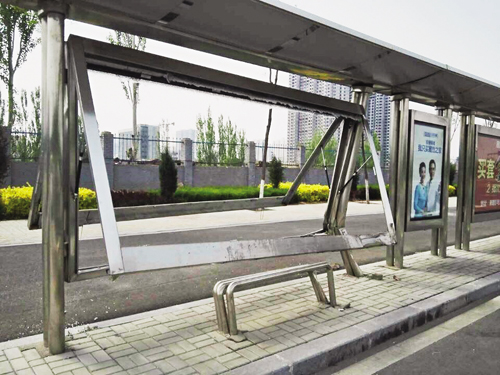 見到記者拍照,一位巡邏民警說,這個(gè)站牌是前兩天被車撞壞的,因?yàn)槭切侣?,公交站牌還未投入使用。這條道路行人車輛稀少,肇事車輛已不知去向,也沒有目擊者。一位開車路過此處的司機(jī)說,這么漂亮的站牌,被車撞成這樣,看著讓人心疼,希望有關(guān)部門加強(qiáng)監(jiān)管,嚴(yán)格懲罰力度。同樣,廣大市民也應(yīng)積極行動(dòng)起來,愛護(hù)公共設(shè)施,維護(hù)候車環(huán)境。圖為云中北路慘遭破壞的公交站牌(張志遠(yuǎn) 孫明)