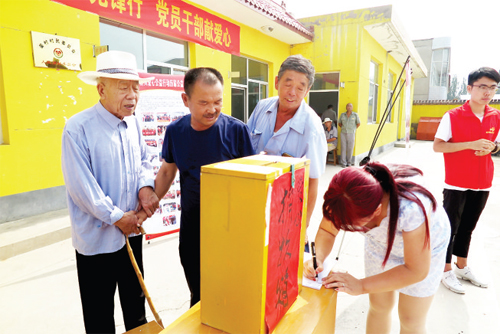 8月7日,“忻州愛心公益行動”團隊一行一百多人,穿著統(tǒng)一的紅馬甲,一大早就出發(fā),驅車來到了距忻州市區(qū)十幾公里的蘭村鄉(xiāng)晏村。剛進村委會大院,就看到了等候著的宿香玲一家以及鄉(xiāng)政府、村委會的工作人員?!瓣P愛貧困生,共筑大學夢”,紅色醒目的條幅傳遞出了大家此行的目的和心聲。此次,“忻州愛心公益行動”團隊不僅為貧困學生宿香玲一家?guī)砹松钣闷泛腿沼闷?,而且送來了資助宿香玲完成大學學業(yè)的善款3萬余元。當天晏村村委會黨員干部們也主動牽頭,開展“兩學一做”先鋒行、黨員干部獻愛心活動,現(xiàn)場為宿香玲籌得善款930元。新希望學校代表也為宿香玲一家送來了米面油等生活用品以及1000元現(xiàn)金。
