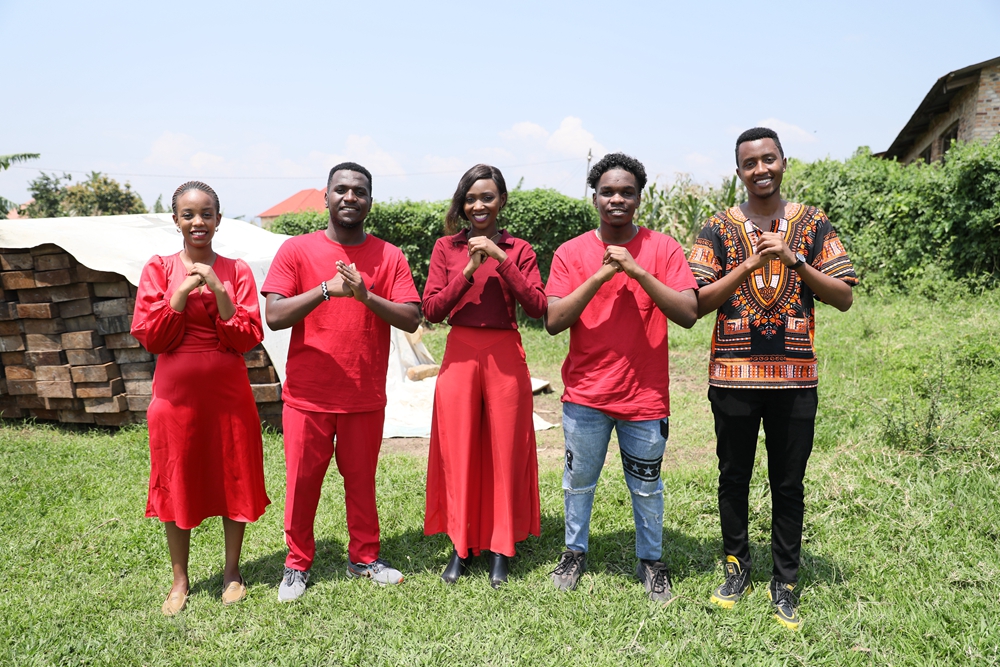 2024年2月7日,在盧旺達南方省卡莫尼地區(qū),盧旺達青年團隊成員向鏡頭前觀眾送上新春祝福。新華社發(fā)(黃萬晴 攝)