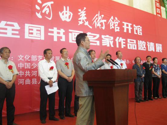 8月31日,河曲美術(shù)館開館暨全國(guó)書畫名家作品邀請(qǐng)展開幕儀式舉行。中國(guó)美術(shù)家協(xié)會(huì)主席劉大為題寫了館名。著名書畫家張旭光、專業(yè)畫家胡寶利專程從北京趕來(lái)祝賀。