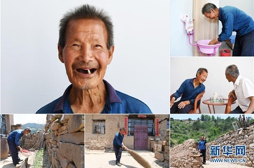 魏連保,男,1949年出生,山西省長(zhǎng)治市沁源縣支角村人。獨(dú)居的他生活不便,2017年年底,村委會(huì)為魏連保在內(nèi)的8位老人修建了一排整齊的新居,并統(tǒng)一安排就餐。 左上:魏連保肖像;右上:魏連保在新居洗臉;右中:魏連保(左)在新居和鄰居李秀成聊天;下右:魏連保在舊居前留影;下中:魏連保在舊居打掃院子;下左:魏連保在舊居為蔬菜澆水(拼版照片,6月18日攝)。 地處晉東南的山西省長(zhǎng)治市,位于由太行山、太岳山環(huán)繞而成的上黨盆地中。在群山中、崖壁上,許多村莊自然條件惡劣,基礎(chǔ)設(shè)施落后,脫貧致富是大山深處人們的迫切心愿。 近年來,一場(chǎng)場(chǎng)脫貧攻堅(jiān)戰(zhàn),在一個(gè)個(gè)深山村打響。政府全力探索脫貧路徑的同時(shí),山區(qū)百姓因地制宜,靠自己的雙手和智慧走上致富路,交出了一份扎實(shí)的脫貧答卷。 記者在太行山、太岳山一路尋訪,記錄下多位70歲老人的生活。這些共和國(guó)的同齡人,親歷了山鄉(xiāng)的巨變,見證著長(zhǎng)治山區(qū)脫貧攻堅(jiān)偉大工程的一步步推進(jìn)。 新華社記者 楊晨光 攝 |