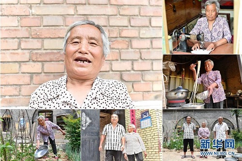 鄭引蘭,女,1949年出生,山西省長(zhǎng)治市潞城區(qū)西靳村人,2015年因家人患病而被納入建檔立卡貧困戶?,F(xiàn)在,多項(xiàng)扶貧政策讓全家人的生活有了明顯改善,當(dāng)?shù)卣畮椭7扛脑斓母G洞也即將完工。 左上:鄭引蘭肖像;右上:鄭引蘭在使用縫紉機(jī);右中:鄭引蘭在廚房盛飯;右下:鄭引蘭(中)一家人合影;下中:鄭引蘭和兒子走出家門(mén);下左:鄭引蘭在院子里給植物澆水(拼版照片,6月12日攝)。 地處晉東南的山西省長(zhǎng)治市,位于由太行山、太岳山環(huán)繞而成的上黨盆地中。在群山中、崖壁上,許多村莊自然條件惡劣,基礎(chǔ)設(shè)施落后,脫貧致富是大山深處人們的迫切心愿。 近年來(lái),一場(chǎng)場(chǎng)脫貧攻堅(jiān)戰(zhàn),在一個(gè)個(gè)深山村打響。政府全力探索脫貧路徑的同時(shí),山區(qū)百姓因地制宜,靠自己的雙手和智慧走上致富路,交出了一份扎實(shí)的脫貧答卷。 記者在太行山、太岳山一路尋訪,記錄下多位70歲老人的生活。這些共和國(guó)的同齡人,親歷了山鄉(xiāng)的巨變,見(jiàn)證著長(zhǎng)治山區(qū)脫貧攻堅(jiān)偉大工程的一步步推進(jìn)。 新華社記者 曹陽(yáng) 攝